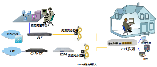 JHA700-G714系列是为满足电信、广电运营商FTTH光纤入户多业务接入需求而设计的一款融合型GPON终端产品,该产品基于成熟稳定、高性价比的千兆GPON技术,融合了千兆以太网交换技术、HFC技术,具有高带宽、高可靠、易管理和良好的服务质量(QoS)保证等特点,设备的技术性能满足ITU G.984设备技术要求等规范的要求, 与主流厂家局端OLT配合使用具备良好的兼容性。