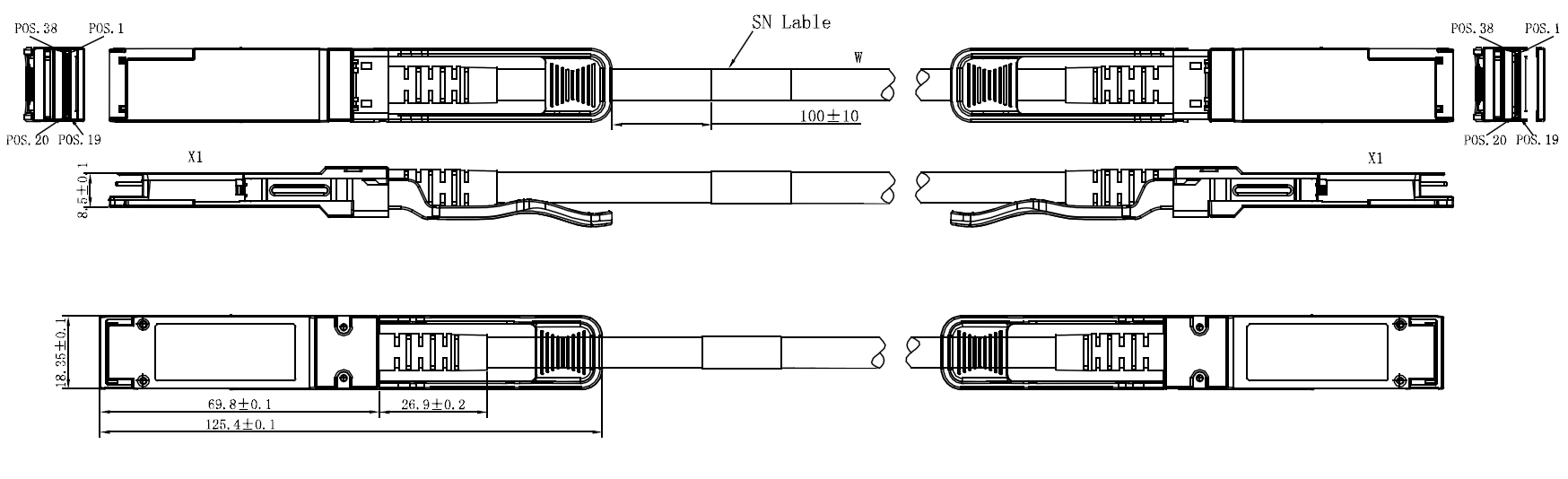 QSFP28 Direct Attach Cables are compliant with the SFF-8665 specifications. Various choices of wire gauge are available from 30 to 26 AWG with various choices of cable length (up to 5m).