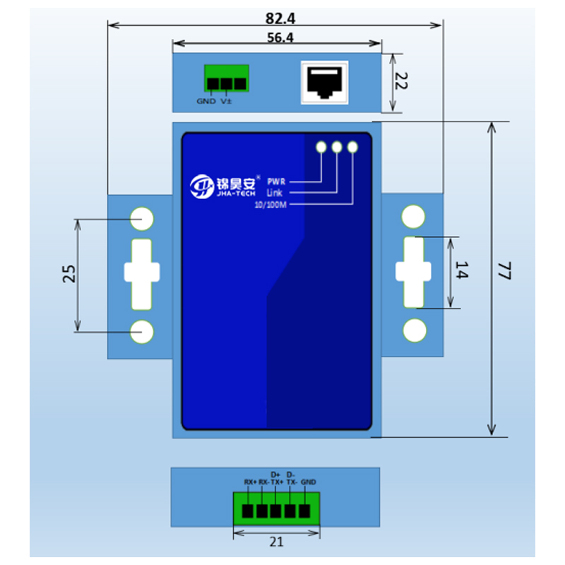 JHA-CKE01D是一款工业级单路串口服务器,实现1路RS422/485转以太网双向透传功能,不同串口灵活切换;1路以太网口,10/100Mbps速率;支持超时重启、超时重连;支持远程监控与远程固件升级;支持虚拟串口,DNS域名解析,外部开门狗等功能;支持自定义心跳包、注册包,杜绝死链接。