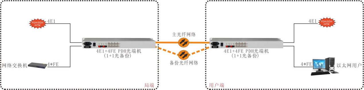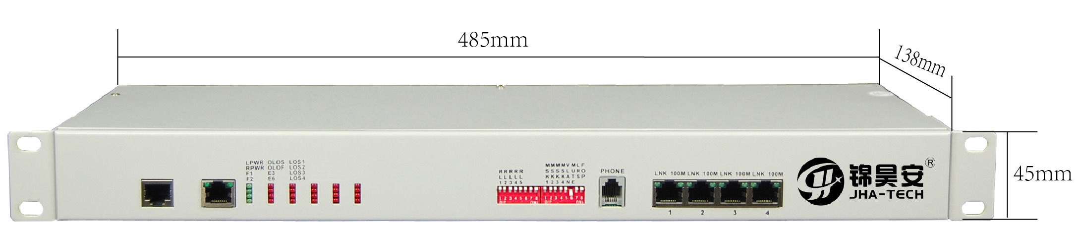 JHA-PD2PE4F4本系列PDH光端机是在本公司研制的PDH光纤传输,专用超大规模集成电路的基础上,研发的点对点光传输设备。该设备提供1~4路E1接口(75欧);主光纤与备份光纤两个光口;1路数字公务电话(可选);1-4路10/100M快速以太网接口( 线速100M);1个扩展接口( 可扩展RS232/RS485/RS422 /Manchester码等 ,可选);1个Console口(可选);应用十分灵活,具备完善的告警功能,整机工作稳定可靠,功耗低,集成度高,体积小。