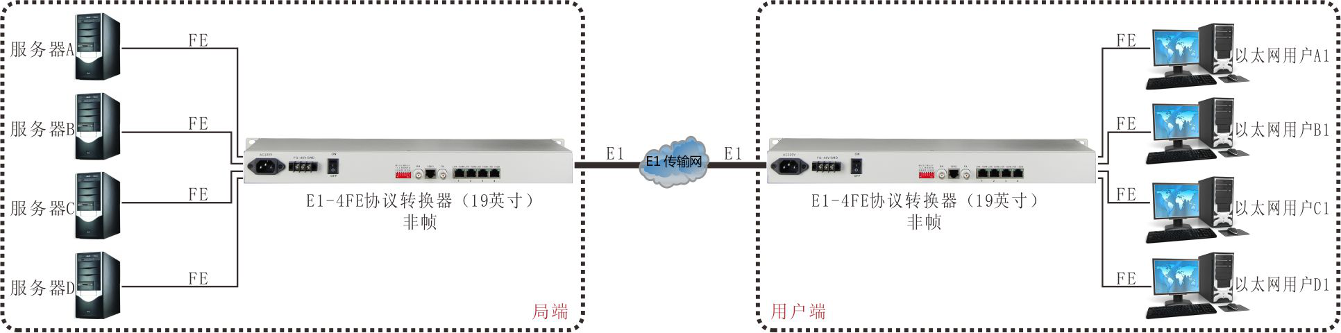 JHA-CE1F4本协议转换器(接口转换器)采用大规模FPGA设计,ITU-T G.703标准非成帧E1接口与4个10/100Base-T以太网接口转换,10/100Base-T通道将其传送到交换机、HUB、路由器、网桥或其他设备上。并能通过光端机等传输设备进行传输,联网后可组成不同网段。本设备是一种高性能、自适应式远程以太网桥。它体积小、成本低,很适宜对成本敏感的桥接应用,或作为比特流基础结构上的局域网延伸器或分段器。可自动不间断地学习与其相连的局域网上的MAC地址,并将目的地址作为另一局域网的帧转发。对TCP/IP协议透明,为网络中不同接口设备之间的通信提供安全、无缝的连接。本设备广泛应用于广域网和局域网之间的联网、监控等场。