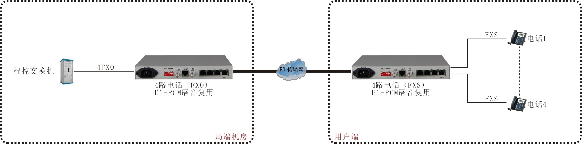 4路PCM(电源内置)E1语音复用