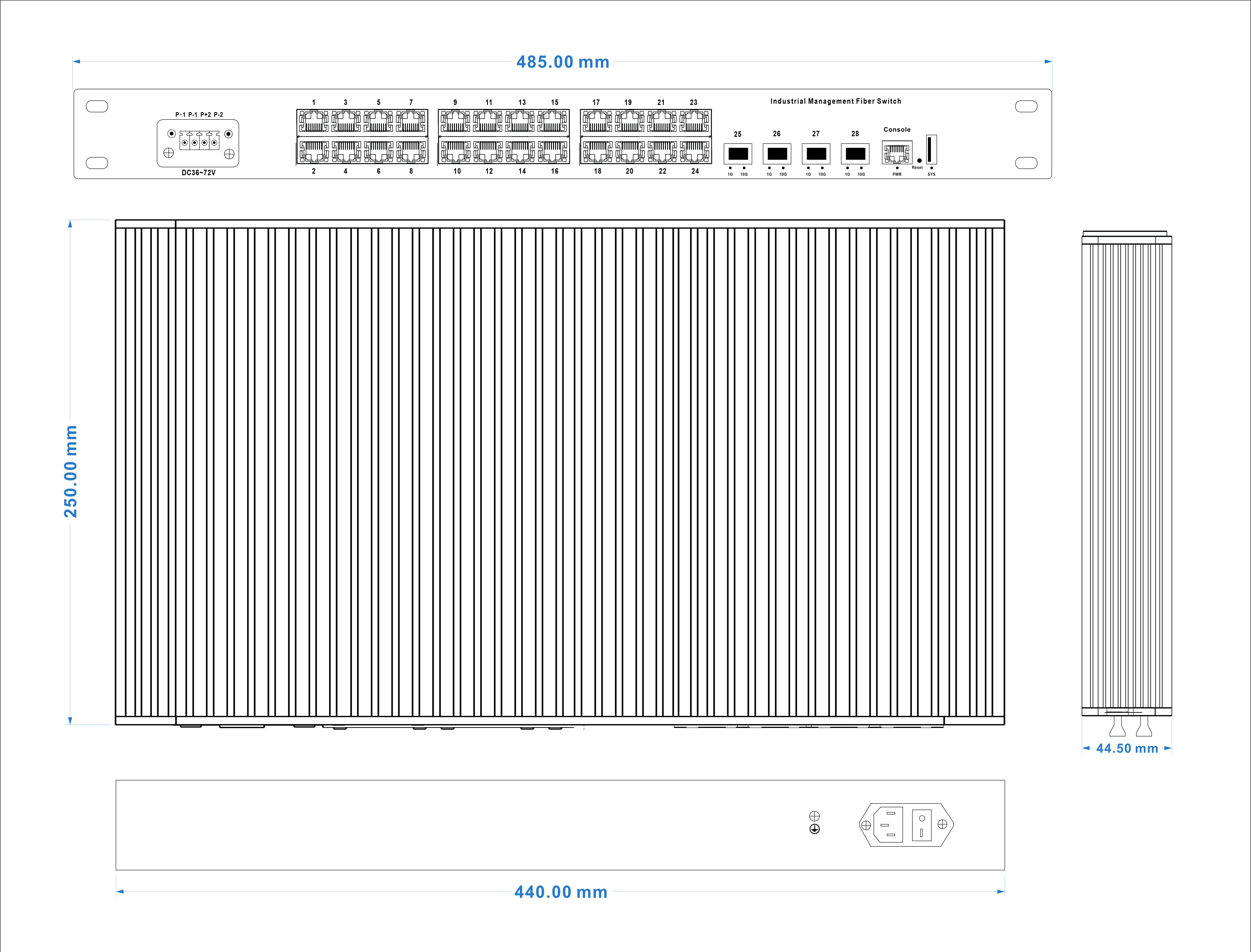 JHA-MIWS4G024H系列是我司自主研发的一款管理型工业级准三层万兆光纤以太网交换机,支持  24  10/100/1000Base-T 自适应 RJ45 端口+4个10G SFP插槽。完全遵循工业产品设计与用料,外壳采用铝合金增强散热效能,通过无风扇散热电路设计、宽范围工作环境温度、高防护等级等技术,提供了耐高/ 低温、防雷等卓越的工业级品质;支持 WEB 管理、VLAN、QoS、SNMP、IGMP 侦听和其它网络功能; 支持以太网快速环网保护以前 STP/RSTP/MSTP 生成树环网;工业级的三级 ESD 保护其适合多种场合,例如智能交通、室外监控、工业网络、平安城市和其他恶劣环境中的部署要求该产品同时采用无风扇、低功耗、工业级设计,-4085℃工作温度范围,能够满足各种工业现场的要求,提供经济的解决方案。 该设备可广泛应用于智能建筑,智慧城市,智慧社区,智能交通、电信、安防、金融证券、海关、海运、电力、水利及油田等各种宽带数据传输领域。