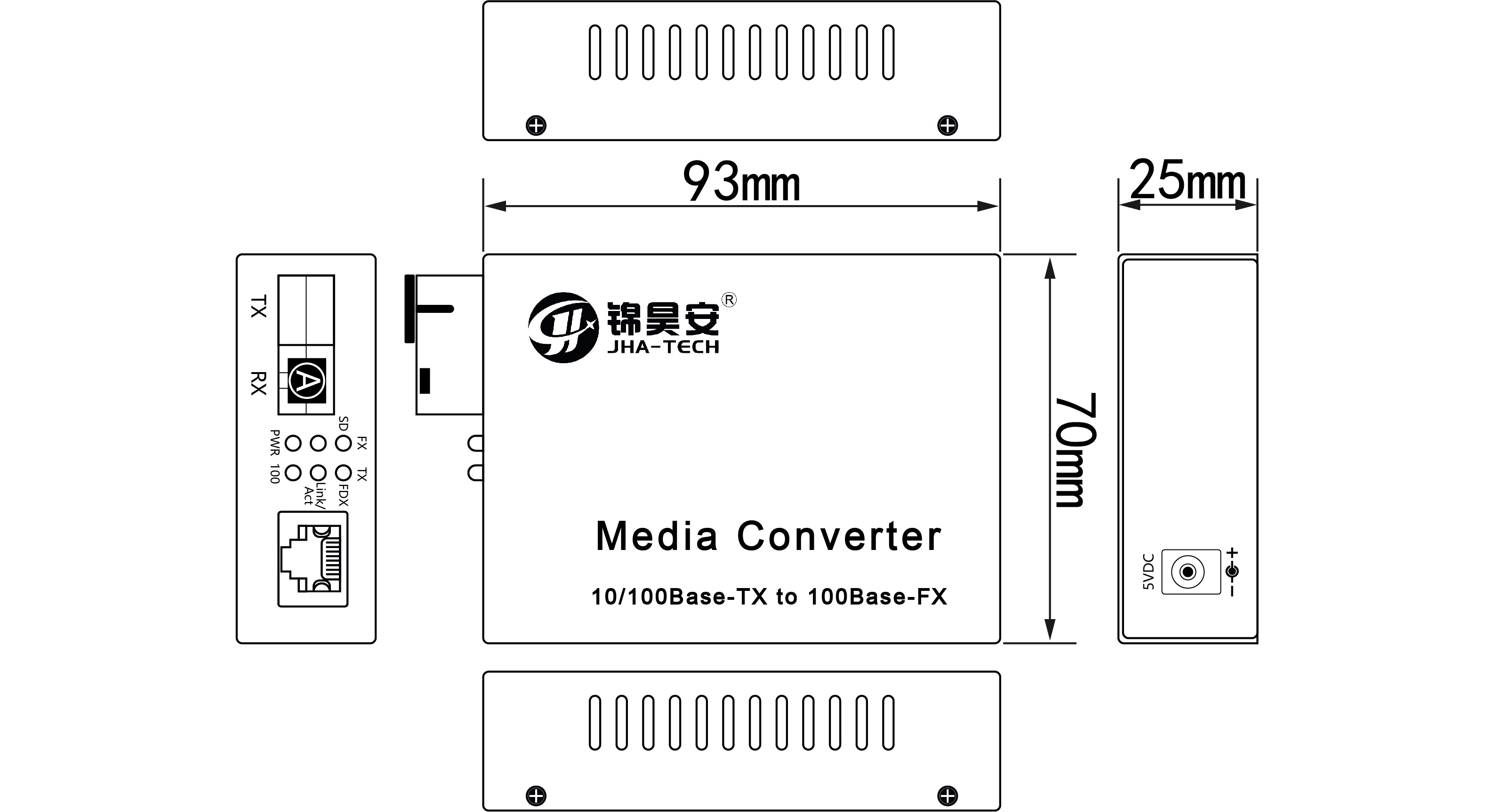 JHA-F11系列是一款10/100M自适应快速以太网光纤收发器,拥有1个百兆光口,1个10/100Base-TX自适应以太网RJ45接口。产品设计符合以太网标准,添加防雷、防静电保护措施,-20℃~+70℃的宽范围工作温度,性能稳定可靠。该设备可广泛应用于智能建筑,智慧城市,智慧社区,智能交通、电信、安防、金融证券、海关、海运、电力、水利及油田等各种宽带数据传输领域。