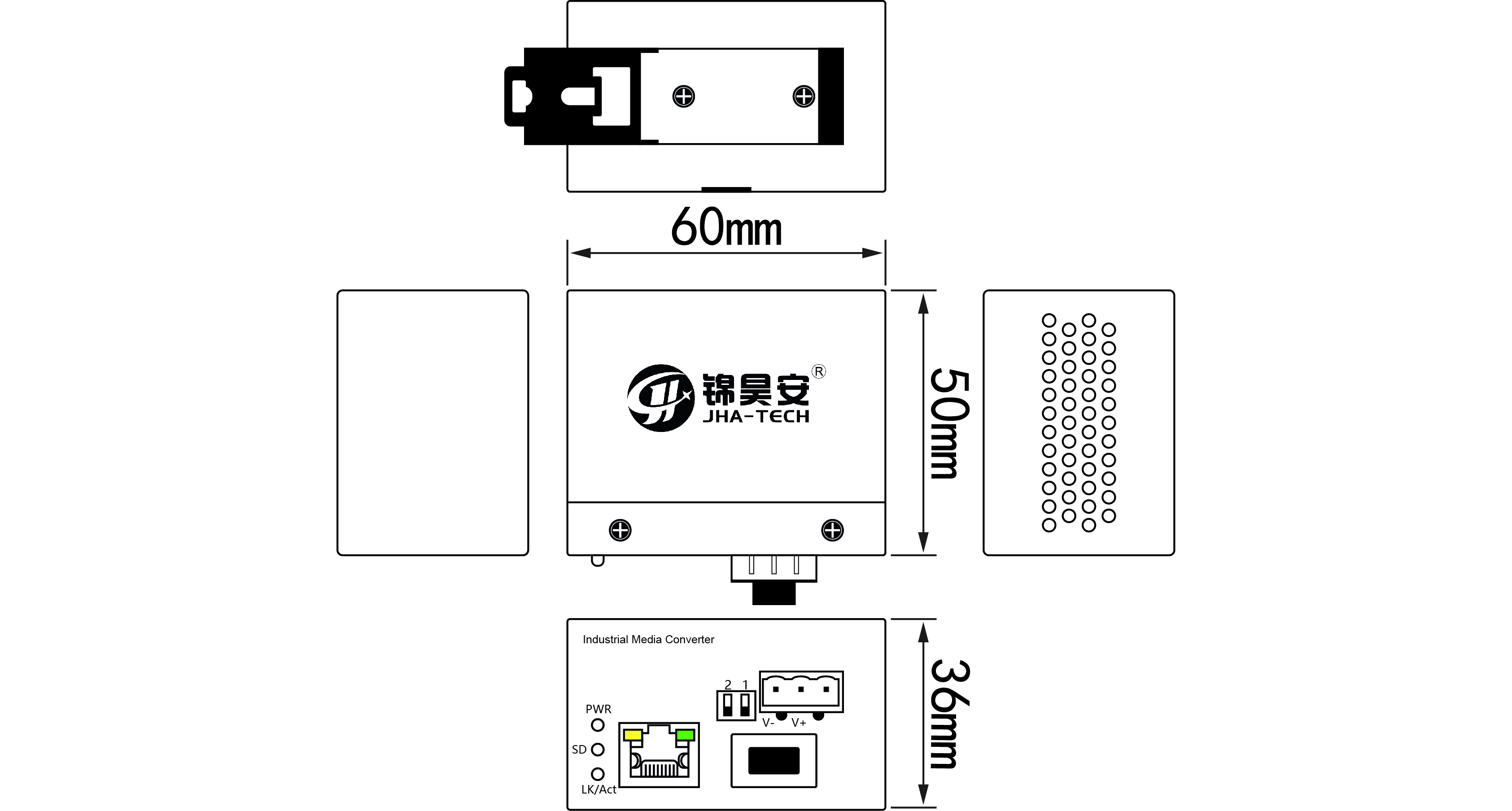 JHA-IGSMN11H系列是一款迷你型非网管型工业级光纤交换机,支持1个1000Base-FX SFP光口,1个10/100/1000Base-TX自适应以太网RJ45接口。产品采用无风扇、低功耗设计,IP30防护等级,高强度金属外壳,工作性能更加稳定。产品符合CCC、CE、FCC、RoHS 标准。-40至85℃的工作温度范围能够适应恶劣的工作环境。DIN导轨式安装,满足工业现场的需求,能为用户的以太网设备连接提供可靠的、快捷的解决方案。该设备可广泛应用于智能建筑,智慧城市,智慧社区,智能交通、电信、安防、金融证券、海关、海运、电力、水利及油田等各种宽带数据传输领域。