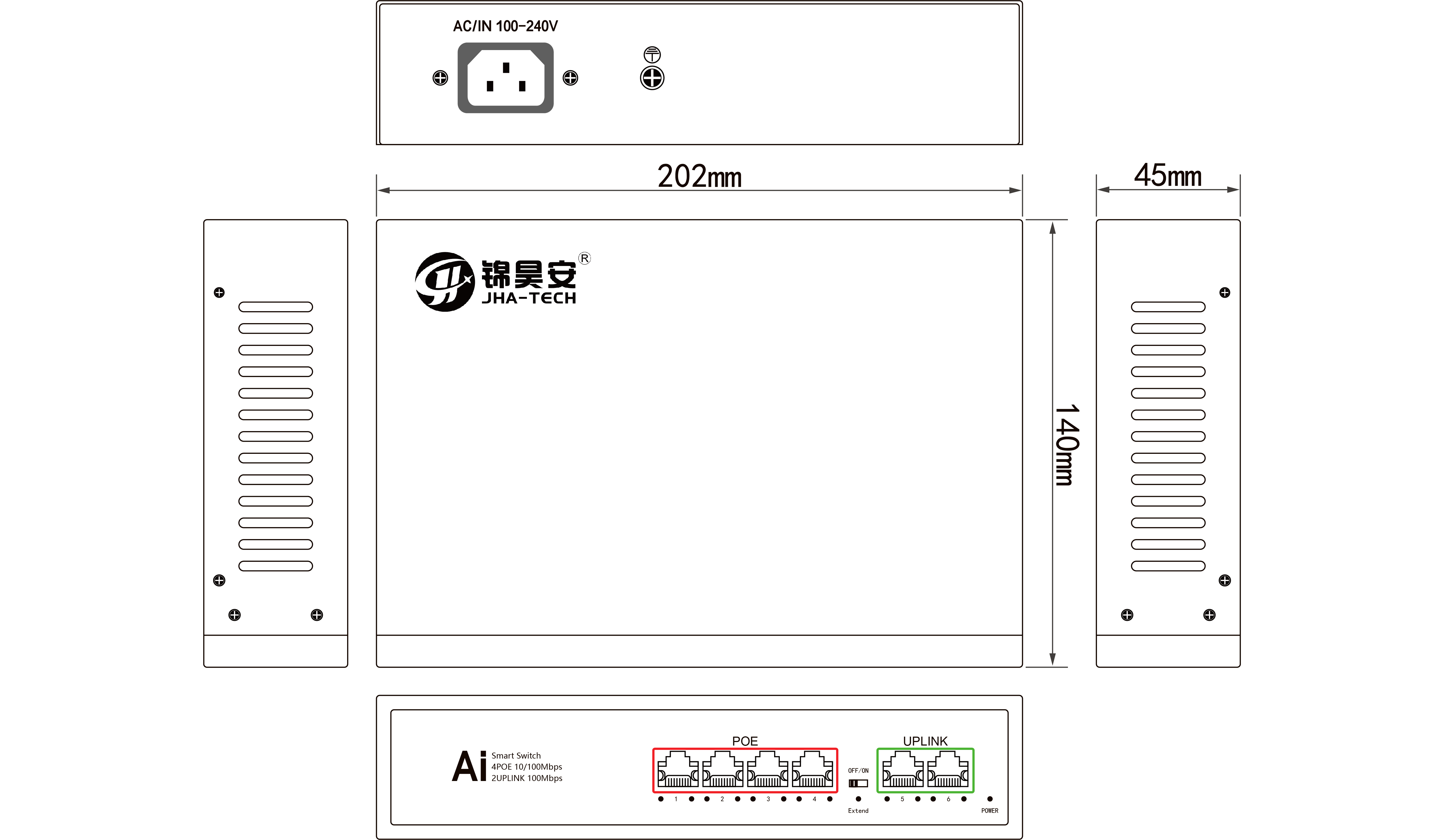JHA-P10204CBMH款PoE交换机是8188www威尼斯专为满足PoE供电需求而自主创新研发设计,采用最新高速以太网交换芯片,超高背板带宽设计,拥有极速数据处理能力,提高流畅的数据传输性能。具有4个POE供电RJ45端口,2个RJ45支持端口上联。其中4个RJ45端口全部支持IEEE 802.3af/at标准PoE供电,单口最大供电功率达30W,整机最大72W。能自动检测识别符合IEEE 802.3af/at标准的受电设备,并通过网线为优先机制供电。