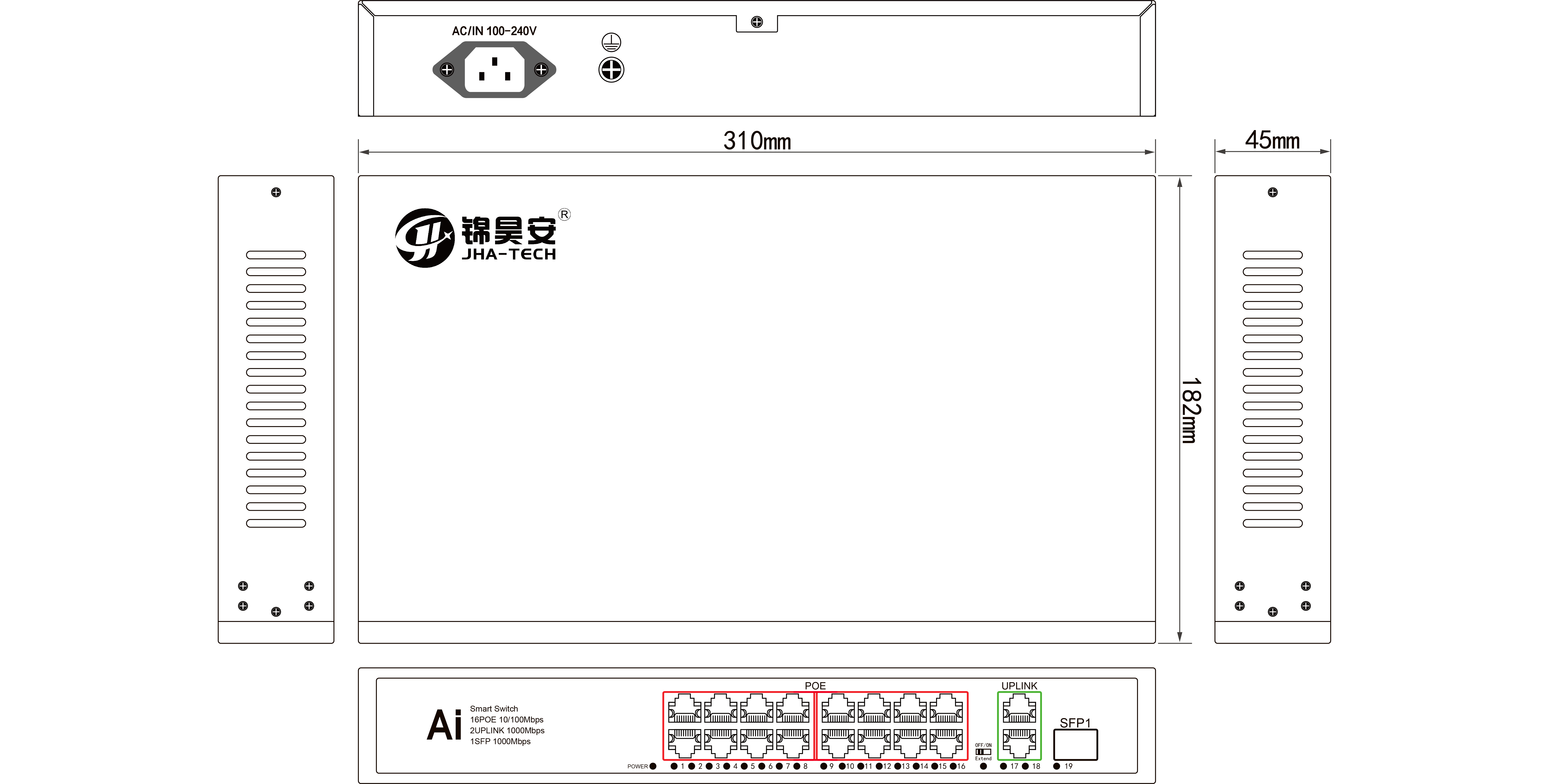 JHA-P312016CBMH POE交换机是8188www威尼斯专为满足PoE供电需求而自主创新研发设计的千兆上联PoE交换机,采用最新高速以太网交换芯片,超高背板带宽设计,拥有极速数据处理能力,提高流畅的数据传输。具有16个百兆RJ45端口、2个千兆RJ45上联端口、1个千兆SFP光口。其中16个百兆RJ45端口全部支持IEEE 802.3af/at标准PoE供电,单口最大供电功率达30W,整机最大250W。能自动检测识别符合IEEE 802.3af/at标准的受电设备,并通过网线为优先机制供电。
