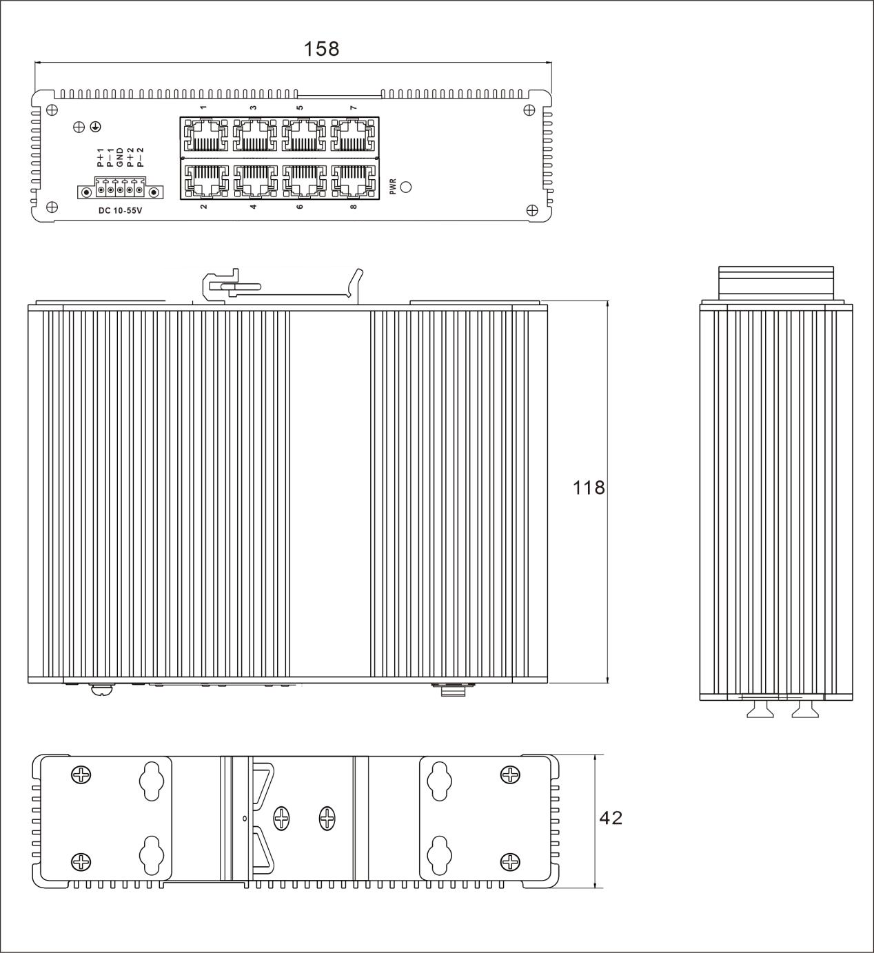JHA-IF08H系列是一款非网管型工业级以太网交换机,支持8个10/100Base-TX自适应以太网RJ45接口。产品采用无风扇、低功耗设计,IP40防护等级,波纹式高强度金属外壳,工作性能更加稳定。产品符合CCC、CE、FCC、RoHS 标准。-40至85℃的工作温度范围能够适应恶劣的工作环境。DIN导轨式安装,满足工业现场的需求,能为用户的以太网设备连接提供可靠的、快捷的解决方案。该设备可广泛应用于智能建筑,智慧城市,智慧社区,智能交通、电信、安防、金融证券、海关、海运、电力、水利及油田等各种宽带数据传输领域。